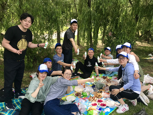 公司在六月一日當天組織大家進行了騎行和野餐活動
